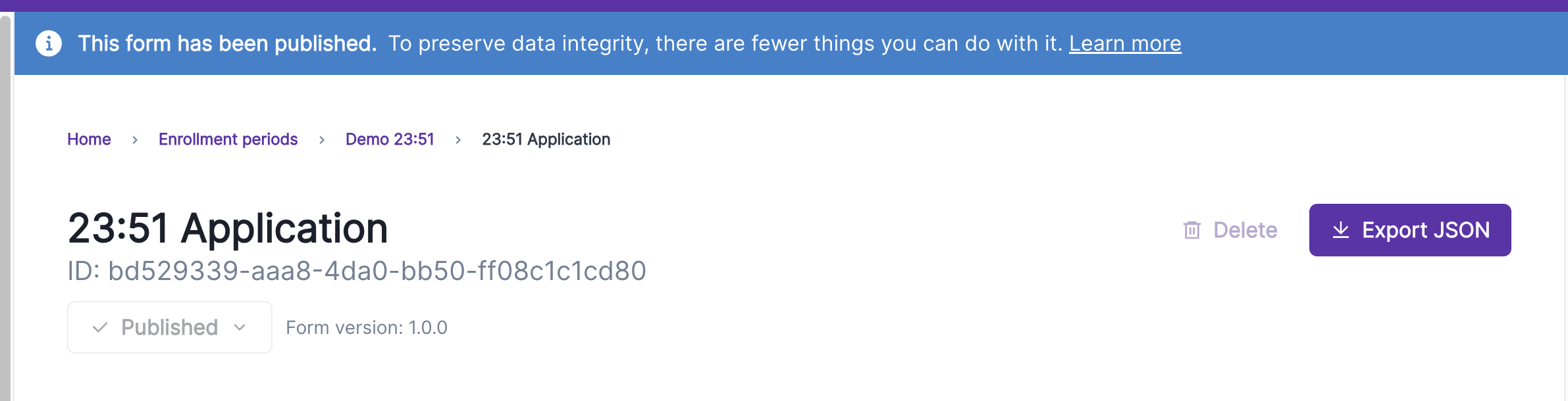 When a form is Published, it is potentially visible to families and/or staff depending on if it's active or not - so when you want to make changes to a live form, we call it Published editing. To protect data integrity and prevent disruptions to in-progress applications, editing capabilities are intentionally limited.
