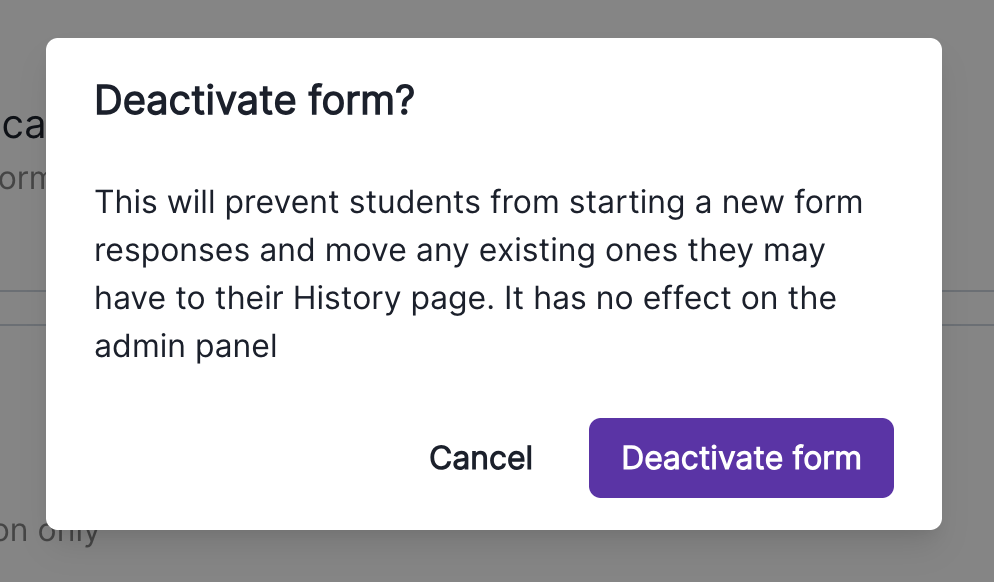 3. When deactivating a form, you'll be prompted to confirm as well: