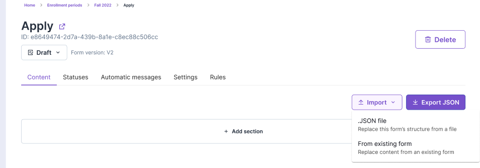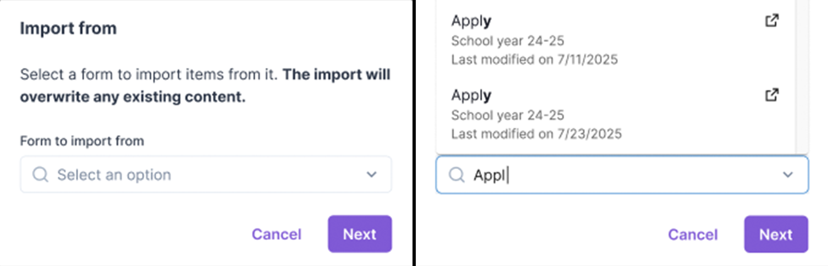 When setting up a new cycle, several of the elements from the previous period are the same as the ones you need on the next. Instead of recreating the form from scratch, you can import the contents from a previous form. This saves precious time, prevents mistakes, and helps you test and launch forms much faster!