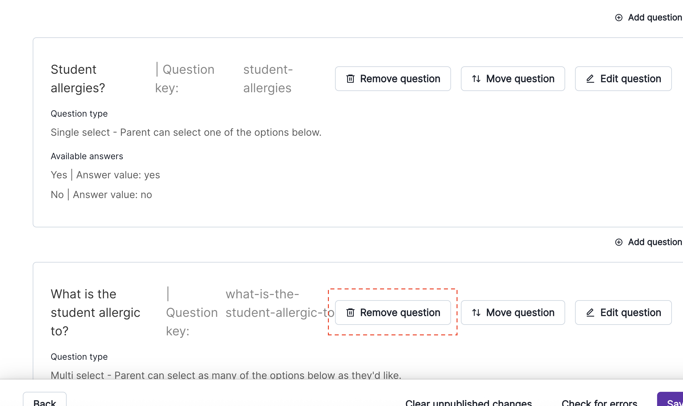 Removing questions