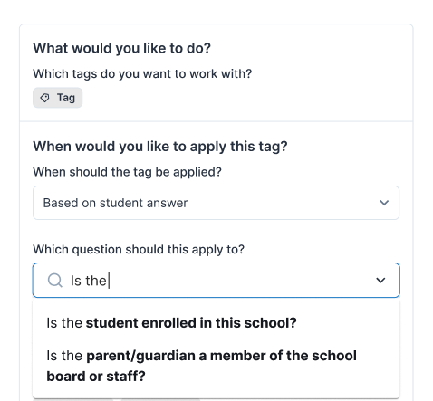 Automatic tagging allows your team to keep records organized without extra manual work. With Answer-Based Autotagging, you can automatically apply a tag when a student or family selects a specific answer on a form.
